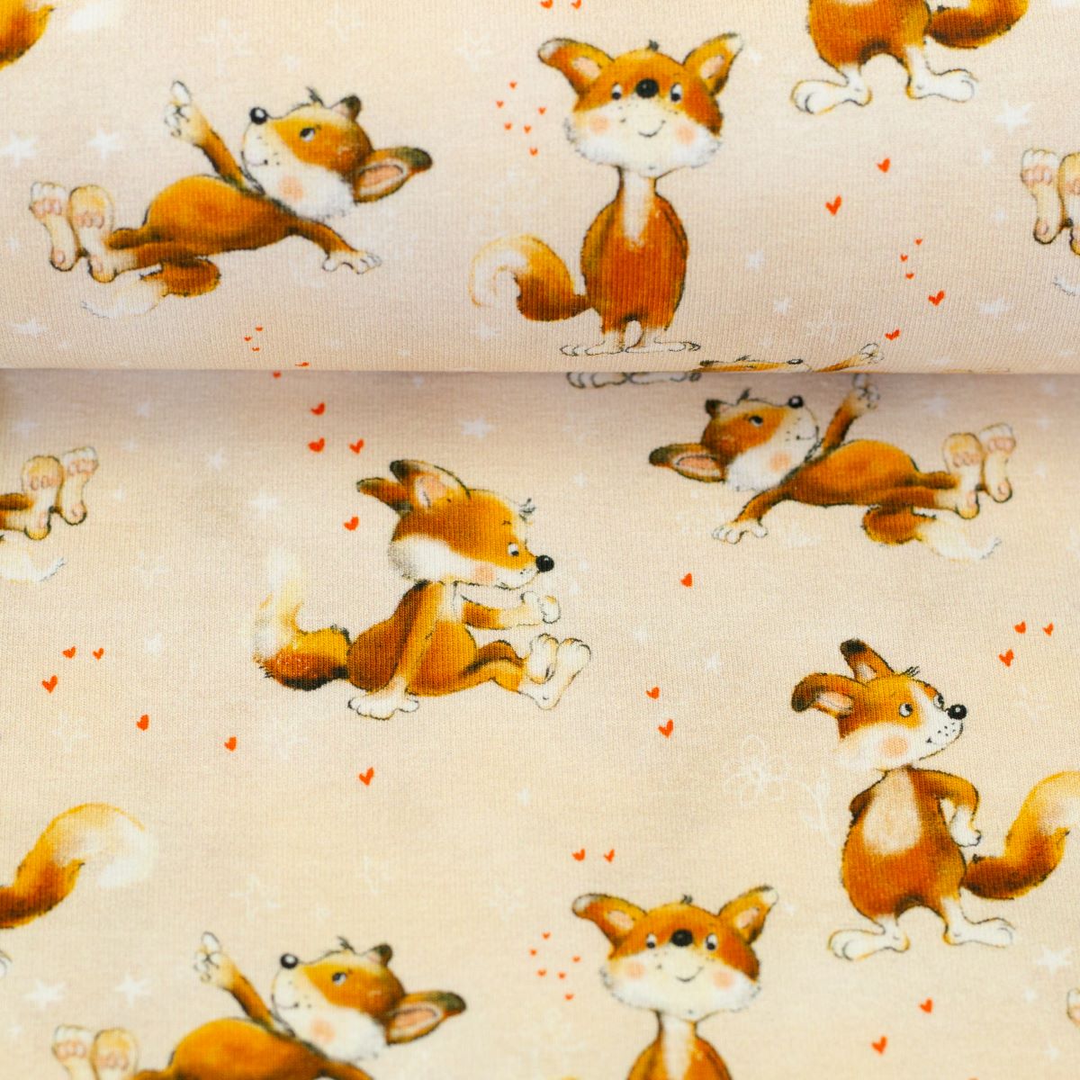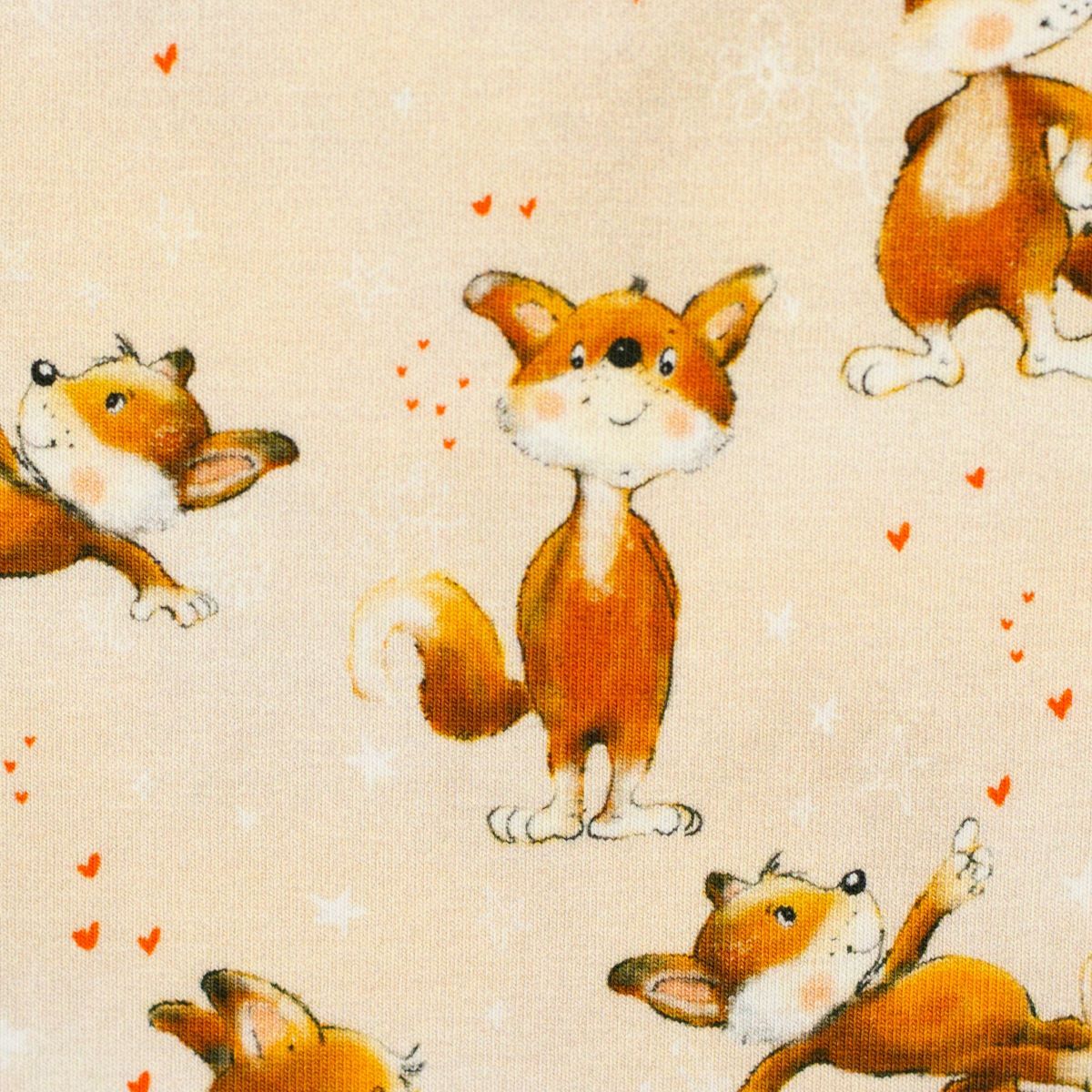 Hochwertiger Baumwoll Jerseystoff mit super niedlichen kleinen Füchsen