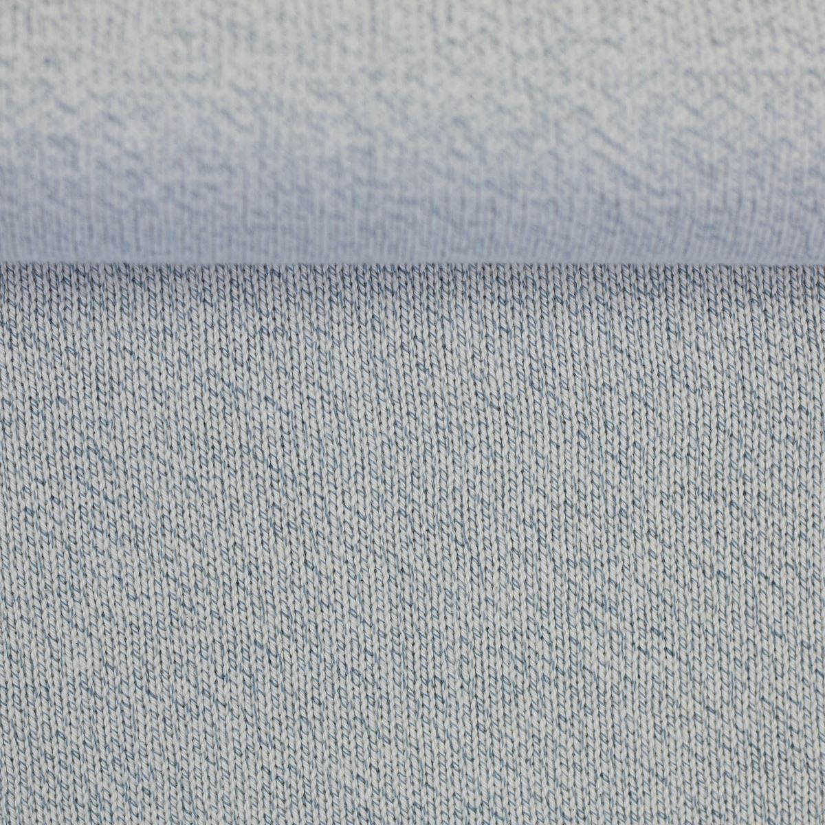 Die gleichmäßige Strickstruktur wird durch einen dezenten Mélange-Effekt ergänzt, der durch das Zusammenspiel von farbigem Garn und naturfarbenem Unterton entsteht. Diese zurückhaltende Optik verleiht dem Stoff Tiefe und macht ihn besonders kombinationsfreudig. Yannik wirkt klar, modern und angenehm unaufgeregt – ideal für zeitlose Schnitte.